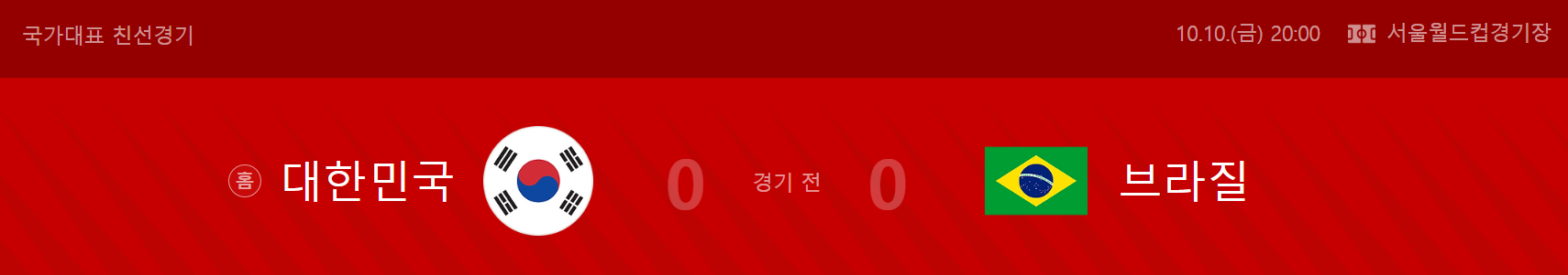 마무리 : 국가대표 한국 대 브라질전 축구 중계 10월 10일 20시